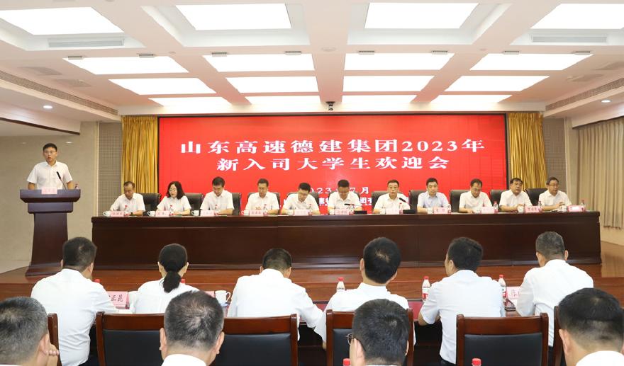 7月28日 公司隆重召开2023届新入司员工欢迎会,来自全国各地高校的335名大学毕业生满怀激情与梦想来到了高速德建这个温馨的大家庭。公司高管、子分公司负责人、总部各部室负责人参加会议,党委书记、董事长赵建强讲话,党委副书记、总经理马志新主持活动,新员工代表参加欢迎会。