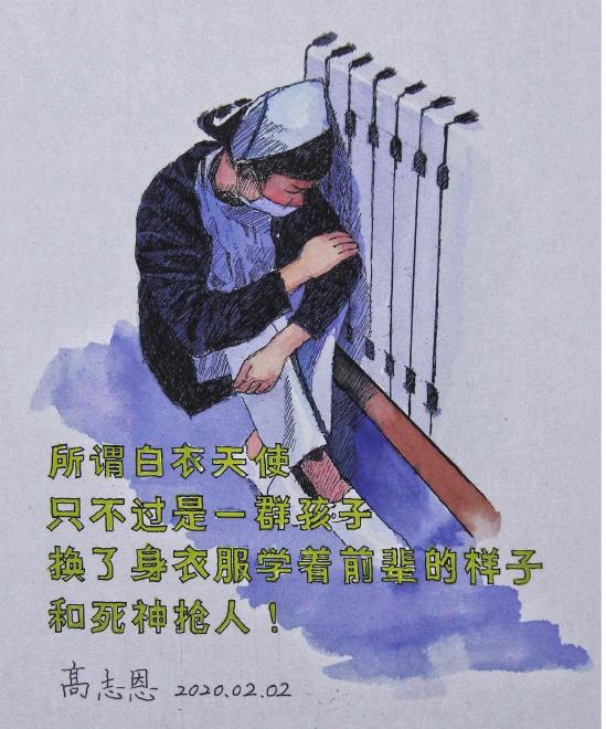 新冠疫情发生以来,集团公司主动援建德州全市13个县市区近150套防疫设施,并号召党员干部主动捐款。高志恩踊跃捐款的同时,各地的抗疫“事迹”无时无刻牵动着他的心,当一幅幅画面在他的脑中浮现,他再也按捺不住心情,创作激情即刻被点燃,于是便心无旁骛地拿起画笔为抗疫创作,记录下这一幕幕“英雄故事”。逆行而上的白衣“战士”、众志成城的执勤官兵、英勇无畏的志愿者们……,都被他一一记录下来。