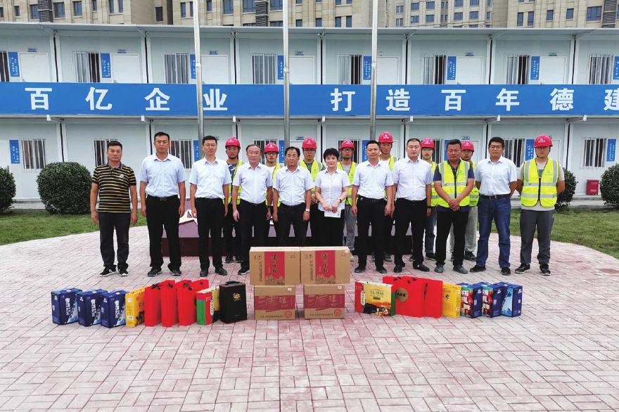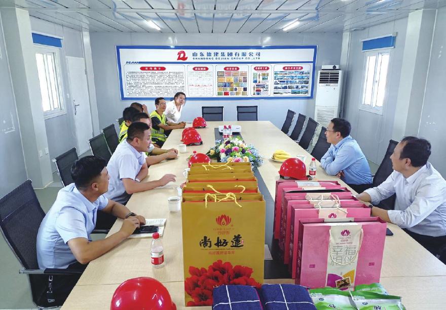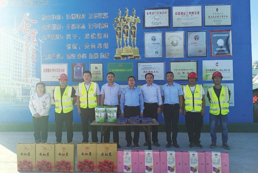 每到一处施工现场,公司领导都向施工人员带去节日慰问品,并与施工人员亲切交谈,带去公司党委、董事会的问候和嘱托,对施工人员的敬业奉献精神高度赞扬。在慰问的过程中,公司领导深入项目现场,了解工程施工进度、生产效益和员工工作生活情况,对项目工作给予充分肯定,并勉励大家,不论在哪个区域施工,都要树好德建形象,为公司发展和品牌建设增砖添瓦、增光添彩!公司上下要进一步畅通上下沟通的渠道和机制、重视和加强团队建设,要正确地面对市场,进一步扩大区域市场拓展成果。