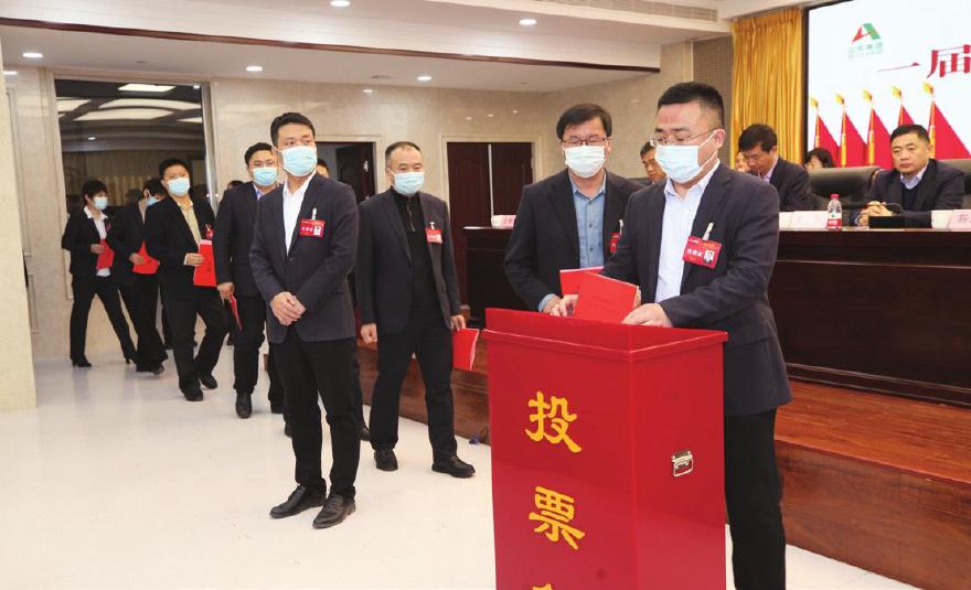 图①:2月21日上午,山东高速德建集团有限公司第一届第一次职工(会员)代表大会召开,会议现场,职工(会员)代表们依次进行投票。