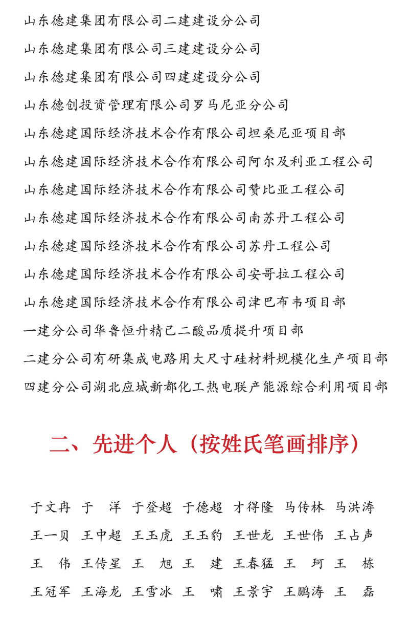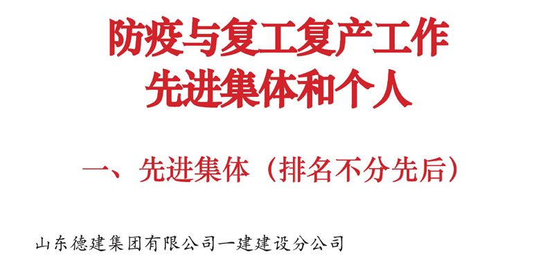 为树立先进典型、凝聚榜样力量,7月1日,在中国共产党建党99周年之际,德建控股隆重表彰疫情防控和复工复产工作的15个先进集体和172名先进个人,同时号召全体员工更加紧密地团结在以习近平同志为核心的党中央周围,从抗疫斗争中汲取奋进力量,以更加强烈的责任和担当投入到下一阶段的斗争中,夺取疫情防控和经济社会发展的“双胜利”。
