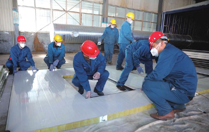 ②1月30日,集团生产车间内,工人正在对建材进行测量、切割