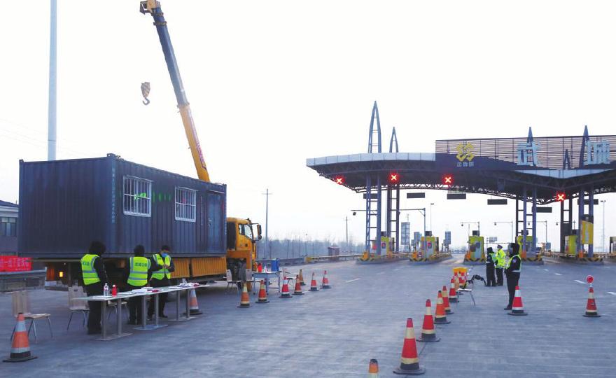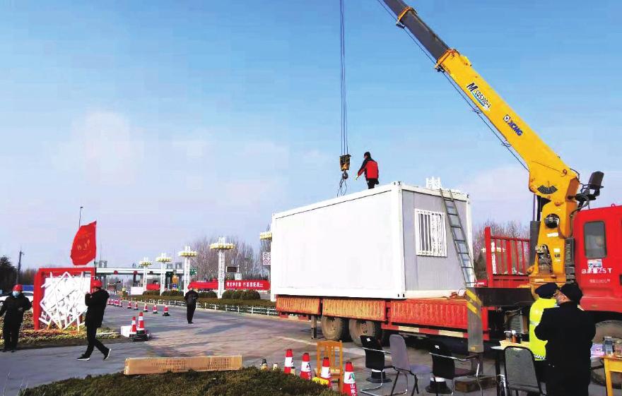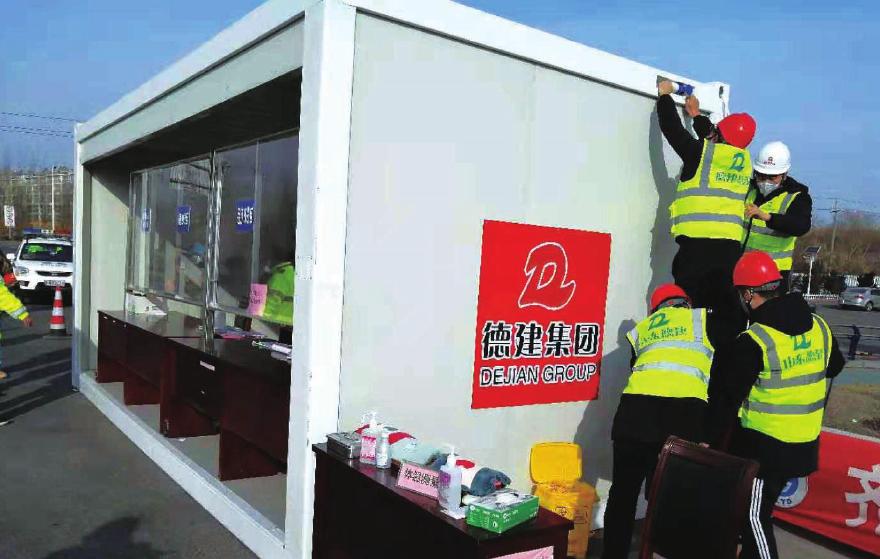 ④2月2日,一建分公司正在为京台高速德州北口安装防疫留验室