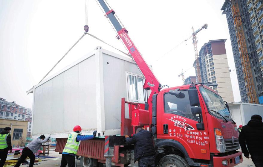 ⑨2月3日,四建分公司为平原东高铁站运送安装隔离板房