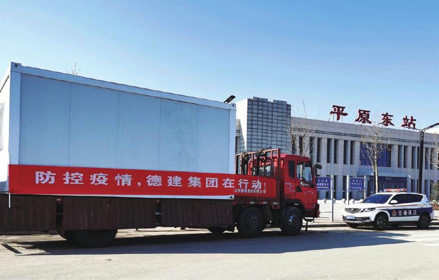 ⑤2月4日,一建分公司为宁津县各主要路口援助的隔离板房装车
