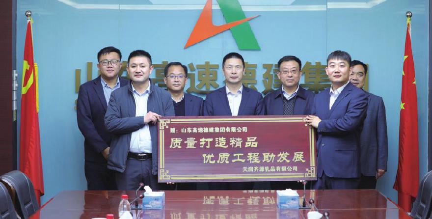 12月5日,天润齐源乳品有限公司党支部书记、董事长李庆江,采购部部长徐杰来公司赠送牌匾,以感谢公司在天润齐源乳品有限公司年产15万吨液态奶项目施工过程中的优质高效履约。公司党委副书记、副董事长、总经理马志新,党委委员、副总经理张刚权、副总经理贺金清,西北分公司党支部书记、总经理贾克祥参加活动。