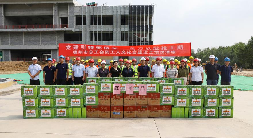 7月20日,“党建引领抢工期建强职工新阵地”百日攻坚战动员会议暨德州市总工会为一线职工送清凉活动在二建分公司承建工人文化宫项目举行,为顶着炎炎烈日奋战在生产建设一线的职工们送去防暑降温物品和关心关怀。德州市总工会经费审查委员会主任、市工会事业发展中心主任段月英,以及各参建单位相关负责人、党员代表、一线职工代表参加活动。