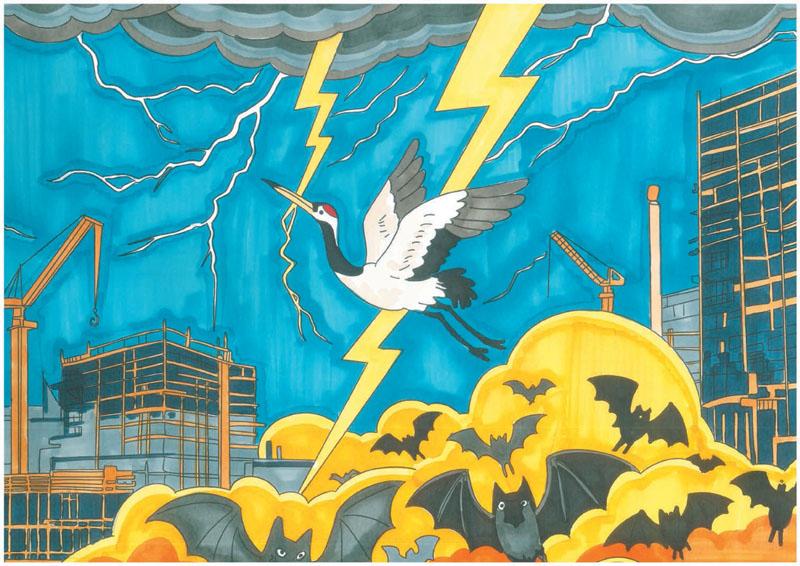 森林里的动物们看到这一幕,欢呼雀跃,而云羽却已精疲力竭,倒在了森林之下,大家对云羽充满了感激和敬佩。随着蝙蝠的消失,森林开始慢慢恢复生机。树木的伤口逐渐愈合,新的枝叶开始生长;动物们也有了足够的食物和栖息地,它们的身体渐渐恢复了健康。沼泽地里的死鱼烂虾也消失了,水又变得清澈起来,丹顶鹤们的生活重新回到了正轨。