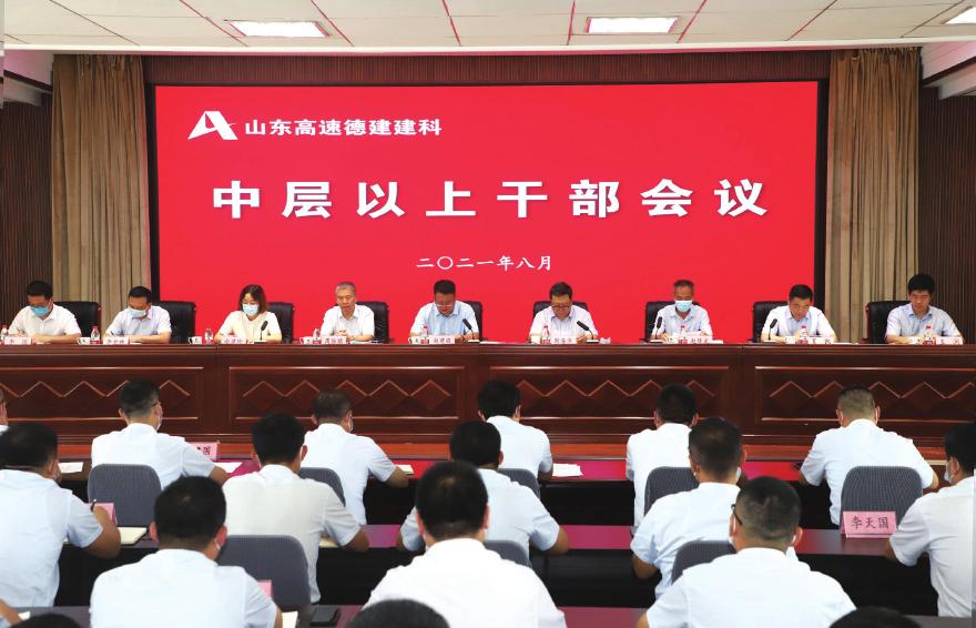 8月11日,山东高速德建建科召开中层以上干部会议。山东高速德建集团党委书记、董事长赵建强出席会议并讲话,集团党委副书记、总经理靳海洋主持会议。德建建科中层以上人员、项目经理参加会议。会议宣读了德建控股党委关于建科公司党总支增补委员的批复,党总支由5名委员组成,赵建强同志任党总支书记;宣读了建科公司董事会文件,赵修武同志任董事长,夏凯同志任总经理;宣读了建科公司监事会文件,赵建玲同志任监事会主席。