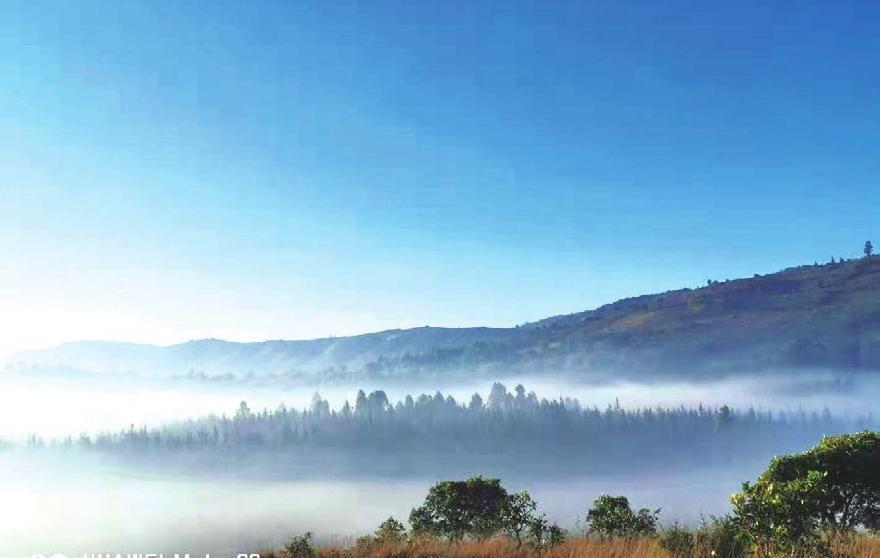 俗话说,一年之计在于春,一日之计在于晨。尘世间的万物苏醒,都在朝阳升起的那一刹那显现。城市里高楼耸立,车水马龙,无法体会到这初升的美景。只道是机缘巧合,上天或许知晓我对山林间美景的眷恋,便派我来到了这广博物丰的非洲。破晓时分,散步于天地间,吮吸这一天最美味的空气,只叫人流连忘返。晨间雾气尚未散去,只见远处的丛林矗立其中宛如人间仙境,正如苏轼诗中写到“山色空蒙雨亦奇”。为了让人们尽早实现一天的劳动,太阳使劲儿向上升着,刹那间,散发出夺目的光芒,远方的白云就像被镀上一层金边。我对山间缓缓升起的太阳情有独钟,只因它传递万物苏醒的信息。
