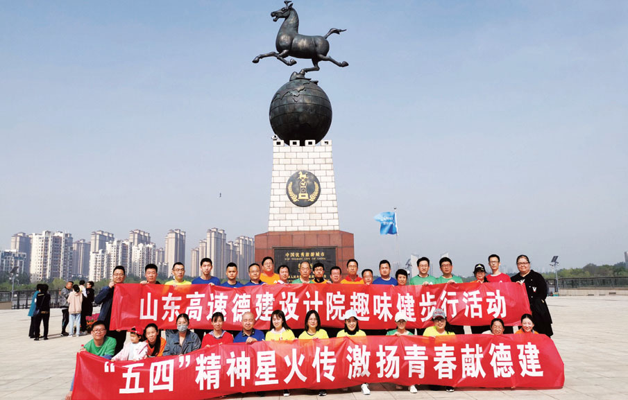 5月4日,设计院团委在开发区长河公园组织主题为“五四精神星火传激扬青春献德建”的健步行活动,增进职工之间的友谊,增强企业凝聚力,展现德建青年职工健康向上的良好风采。