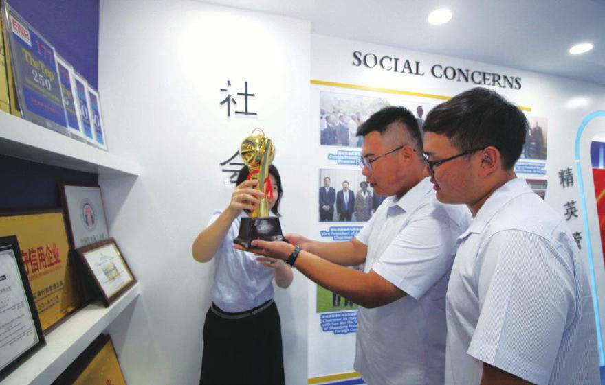德建国际新入职员工参观展厅,了解公司在海外发展历程、获得荣誉及履行的社会责任