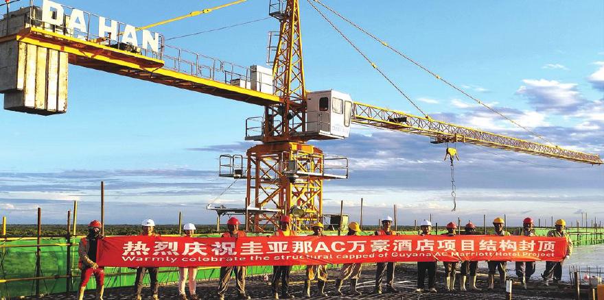 当地时间12月7日,加勒比分公司承建的圭亚那AC 万豪酒店项目主楼主体顺利封顶,为缩短项目工期提供了支撑,标志着项目建设取得了阶段性成果。