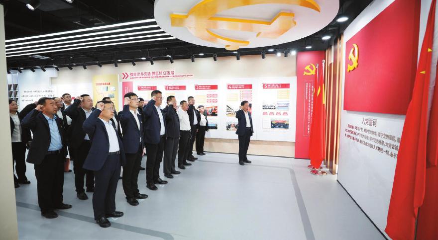 全体党员共同参观了高速德建企业展厅,并在展厅集体重温入党誓词。会上,为4月份入党的党员同志颁发政治生日贺卡,集中学习了《习近平在中共中央政治局第十九次集体学习时强调坚定不移贯彻总体国家安全观把平安中国建设推向更高水平》《中央政治局贯彻落实中央八项规定实施细则(2022年中央政治局审议通过)》《习近平总书记关于党的建设的重要思想概论》绪论《深入学习领会习近平总书记关于党的建设的重要思想》等内容,部分党员代表结合岗位工作进行交流发言。
