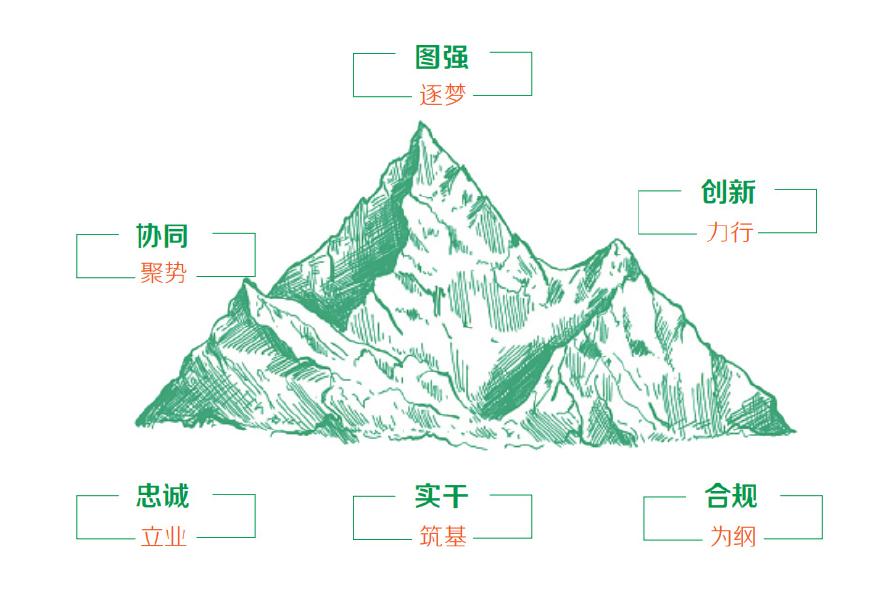我们以“忠诚”立业,以“实干”筑基,以“合规”为纲,共同夯实山高人的行为基准;我们以“协同”聚势,以“创新”力行,共同构筑山高人的行为模式;我们以“图强”逐梦,共同笃定山高人的行为指向。这三个层面共同搭建起山高人的行为总则,以“山”的形象展示,象征着山高人的坚定屹立、行稳致远。