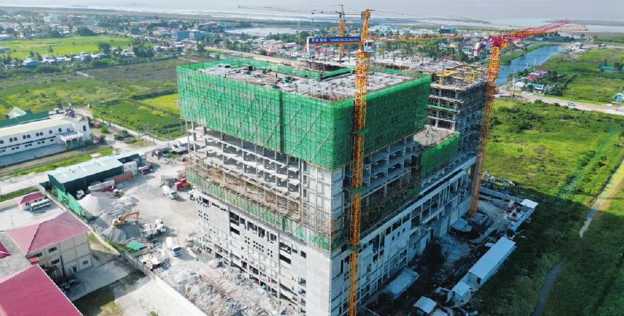 当地时间3月27日,由国际分公司承建的圭亚那蓝桥酒店二期项目顺利封顶,比合同工期提前2个月完成。该项目位于圭亚那首都乔治敦,总建筑面积约40000㎡,施工内容主要包括1栋16层的主体建筑及停车场、游泳池等配套设施。建成后将成为集住宿、餐饮、娱乐为一体的综合型高档酒店,这也是圭亚那第一高楼,它将以现代化的设施和优质的服务,迎接来自世界各地的游客,成为圭亚那展现国家形象的新窗口。