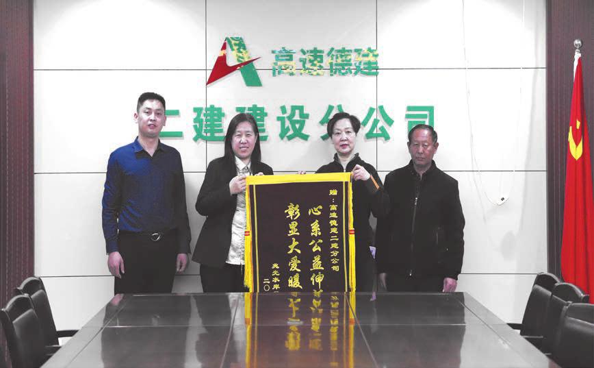 近日,兆光·水岸华园小区的居民代表将一面印有“心系公益伸援手彰显大爱暖人心”的锦旗交到了二建分公司党支部书记于静手中,以此感谢分公司长期以来对各项社区工作的倾力帮扶支持。