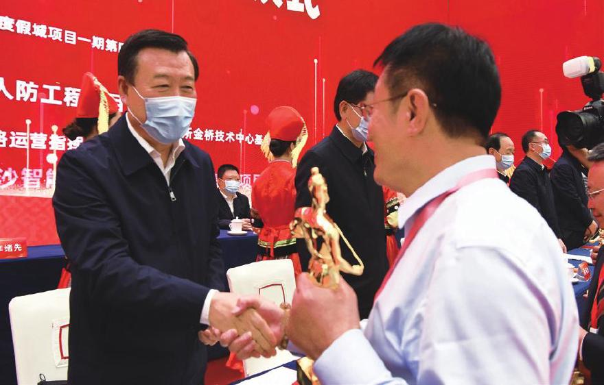 11月25日,2020—2021年度中国建设工程鲁班奖颁奖暨行业技术创新大会在南宁举行,隆重表彰246项鲁班奖工程,发布年度十大技术创新。住房和城乡建设部党组书记、部长倪虹出席并讲话,广西壮族自治区党委副书记、自治区主席蓝天立在会上致辞。公司承建的德州市人民医院门诊楼扩建工程获得鲁班奖、苏丹国家俱乐部项目荣获鲁班奖(境外工程), 倪虹为公司颁奖。