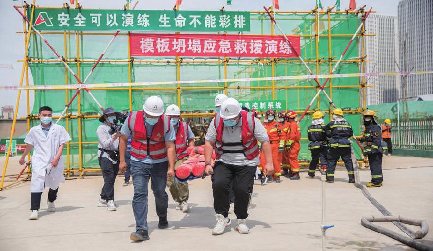 6月2日,由德州市住房和城乡建设局主办,德城区城乡建设局、德城区消防救援大队协办,德州市城市建设投资发展集团有限公司、公司承办的德州市住建系统2022年“安全生产月”启动仪式暨模板坍塌应急救援演练观摩会在兴安居·新河雅园项目顺利举办。德州市住房和城乡建设局二级调研员崔全岳,市应急管理局二级调研员侯广强,市消防救援支队副支队长李振,德州市住房和城乡建设局四级调研员苏振林,德城区委常委、副区长刘明,德城区城乡建设局党组书记、局长罗振辉,德城区消防救援大队大队长刘斌,公司党委书记、董事长赵建强,党委委员、总经理马志新以及各县(市、区)住建部门的分管负责人、市县两级安全监督机构负责人出席此次活动,并有来自全市房屋建筑总承包特、一级企业主要负责人及其他管理人员,共计400余人现场观会;会议还通过线上形式进行全程直播。