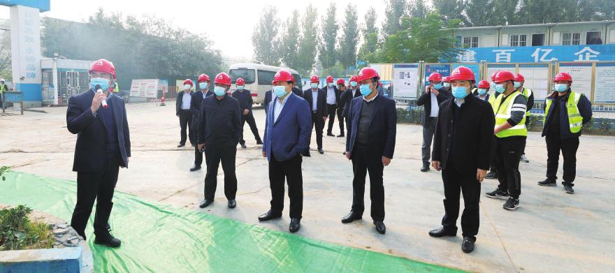 与会人员先后来到三建分公司施工的华中·国宅华园项目、四建分公司施工的前小屯棚户区改造EPC 项目和二建分公司施工的北方应急(医疗)救援综合示范区项目现场,实地查看项目施工情况、听取项目生产进度汇报和制约因素分析。然后,来到一建分公司施工的德州市传染病防治中心项目,观摩学习项目施工调度经验,听取各施工单位总经理下一步重点项目施工调度安排和11月上旬施工生产管理计划。最后,党委副书记、总经理靳海洋同志对生产进度管理提出要求,并强调抓好防疫和安全生产工作。