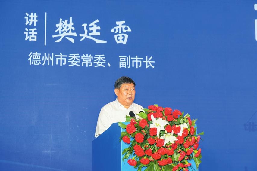 樊廷雷介绍了德州市概况以及全市智能建造产业发展情况,他表示,此次大会既是山东省钢结构行业协会的年会盛典,也是黄河领域钢结构行业智能制造设备展示和经验交流大会,对黄河流域乃至全国钢结构行业智能制造产业发展具有重要推动作用。希望各位行业专家对德州建筑业的发展多提宝贵意见,为德州建筑业的高质量发展传经送宝;希望德州的建筑企业珍惜机会,以本次大会为契机,虚心学习经验、广泛借鉴资源、推动合作共赢,为提升全市智能建造水平、推动建筑业转型升级贡献力量。