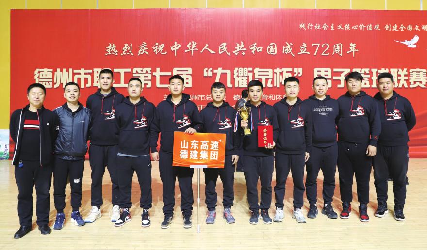 10月16日-22日,由德州市总工会、德州市教体局联合主办的第七届“九衢泉杯”男子篮球联赛在德州市工人文化宫篮球场开赛,全市机关事业、企业单位共41支队伍参加比赛。高速德建集团职工代表队共有12名队员出征。经过七天六场赛事的激烈角逐,先后与德州市城市管理局、德州市公安局、德州德达城投公司、德州公用水务集团、德州交投集团、德州水电十三局等单位比拼篮球技艺,最终取得全市甲级联赛第五名,实现运动成绩和精神文明双丰收。其中,李鹏获得本届全市职工男子篮球联赛“优秀运动员”称号。