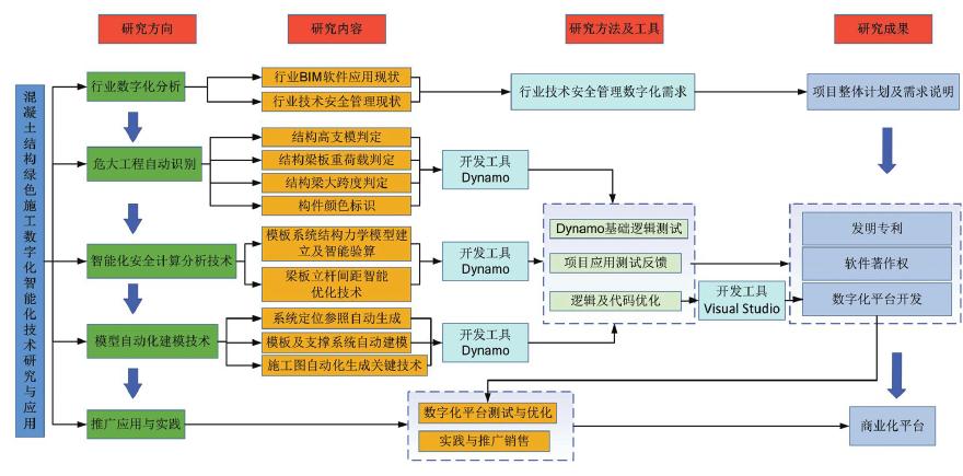 课题研究形成了一整套混凝土结构绿色施工数字化智能化技术,及一套综合管理平台软件——混凝土结构施工安全管理智能数字化平台;同时结合该项课题研究,形成了包括《基于DYNAMO 及REVIT 的大跨度梁模板危大工程识别系统软件》等在内的12项软件著作权和5项专利等成果。(科技质量部 李庆刚/苏钢)