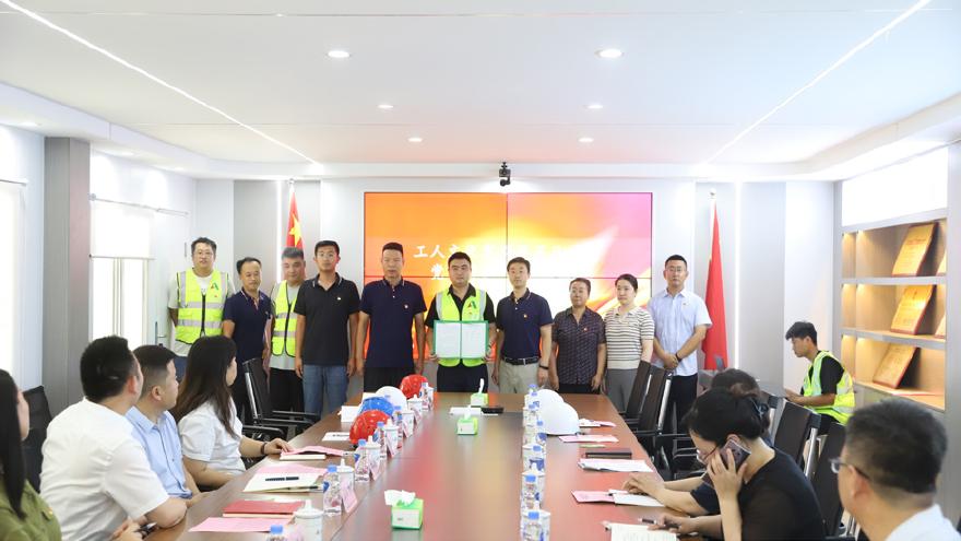 体育公园项目团队是一支以90后为主体的年轻队伍,一张张稚嫩黝黑的面庞,有着与年龄极不相符的成熟。他们虽然年轻,但并不缺经验。这得益于他们把党旗插在工地上、把身份亮在岗位上的先锋精神和担当精神。2023年7月20日,炎炎夏日,暑气正盛。在工人文化宫项目建设奋勇冲刺、提速攻坚的关键时期,“党建引领抢工期建强职工新阵地”百日攻坚战动员会议召开,会上成立了以项目团队为主体的百日攻坚党员突击队。