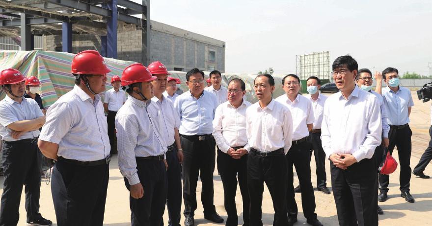 5月21日,山东省委常委、常务副省长王书坚一行实地调研集成电路用大尺寸硅材料规模化生产项目建设情况。德州市委书记李猛,山东省政府办公厅副主任宫志远,省信访局副局长张宝清,德州市委常委、常务副市长刘长民,市政府秘书长王震秀,德州经济技术开发区党工委副书记、管委会副主任沈四平,山东有研半导体材料有限公司总经理张果虎,山东有研半导体材料有限公司有研硅项目负责人常青,集团二建分公司总经理张元刚参加活动。