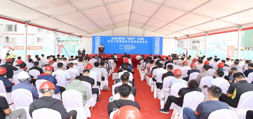 9月20日,齐河县住建系统“质量月”活动暨住宅工程质量提升现场观摩会议在公司承建的鑫都御临河院(一期)项目举办。齐河县住房和城乡建设局质安中心主任朱立东,山东高速德建集团副总经理贺金清,二建分公司总经理田正昆,县住建部门、监督机构、监理单位等200余人参加活动。