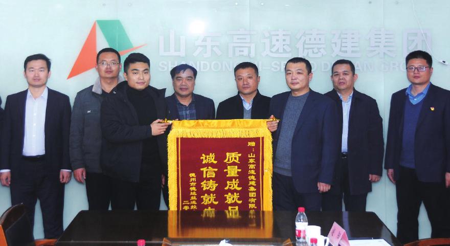 12月11日,德达益远投资集团副总经理、陵城区设计院院长邱清龙、工程管理部部长付居雷、项目经理满俊超一行到公司赠送锦旗和感谢信,对公司在陵城区芦坊片区、北街片区项目施工中取得的突出成绩给予认可并表示感谢。公司副总经理贺金清,一建分公司党支部书记、总经理陈成广等参加会议。