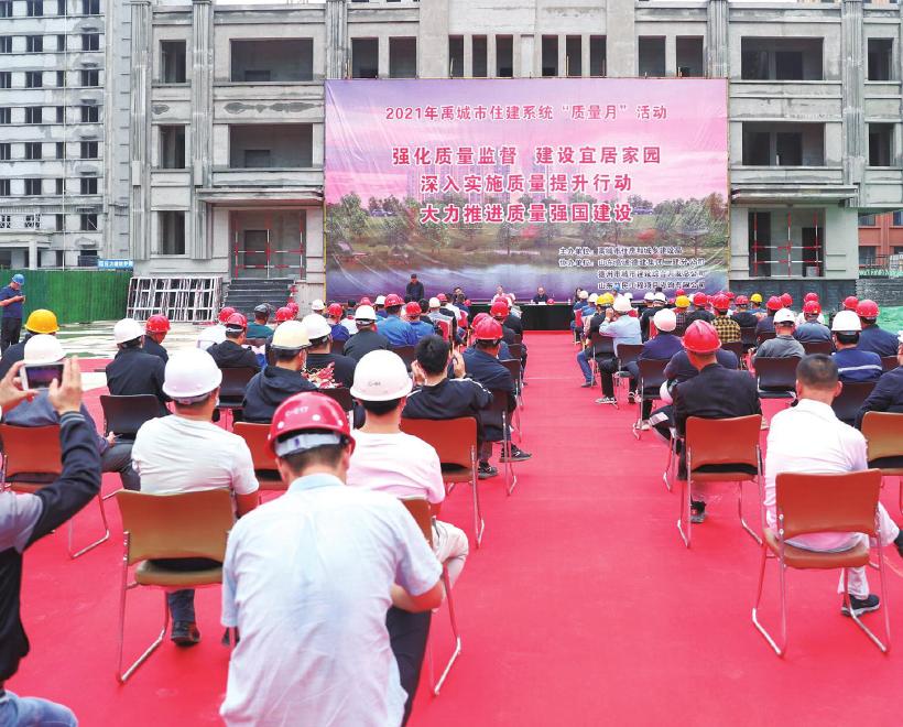 9月27日,禹城市住建局在高速德建二建分公司施工的禹城市幸福里小区项目施工现场,举行“深入实施质量提升行动·大力推进质量强国建设”为主题的2021年“质量月”观摩活动。观摩活动采用现场讲解、实体查看和交流分享等方式,项目施工的主体结构工程质量、装饰装修拍浆工艺、抹灰施工质量等,均给观摩人员留下了深刻印象,在禹城房屋建筑工程质量提升行动中树立了良好品牌形象。
