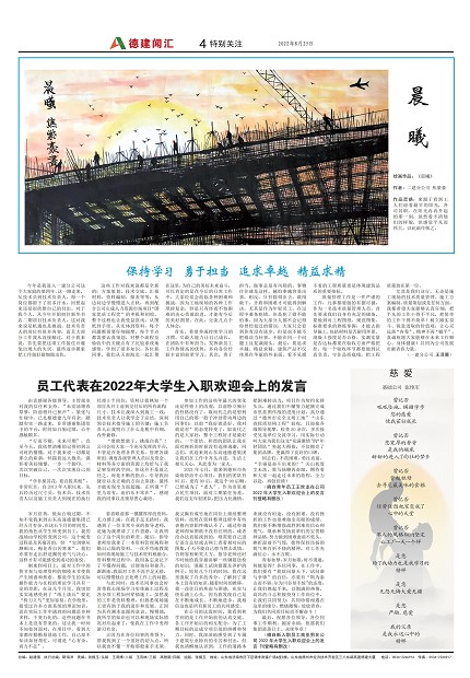 员工代表在2022年大学生入职欢迎会上的发言