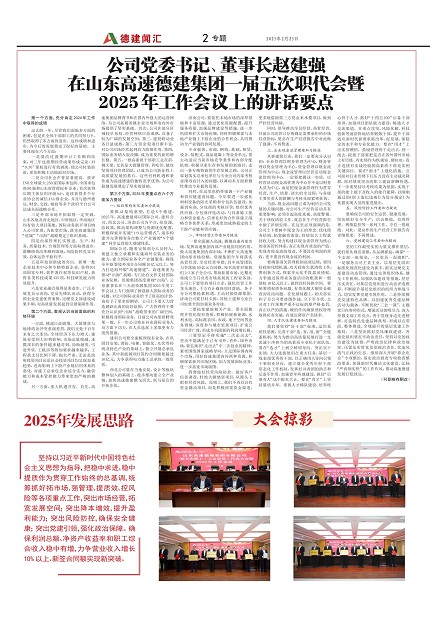 公司党委书记、董事长赵建强在山东高速德建集团一届五次职代会暨2025年工作会议上的讲话要点