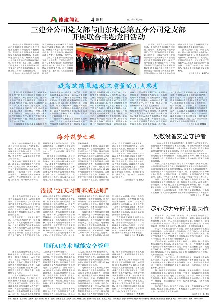三建分公司党支部与山东水总第五分公司党支部开展联合主题党日活动